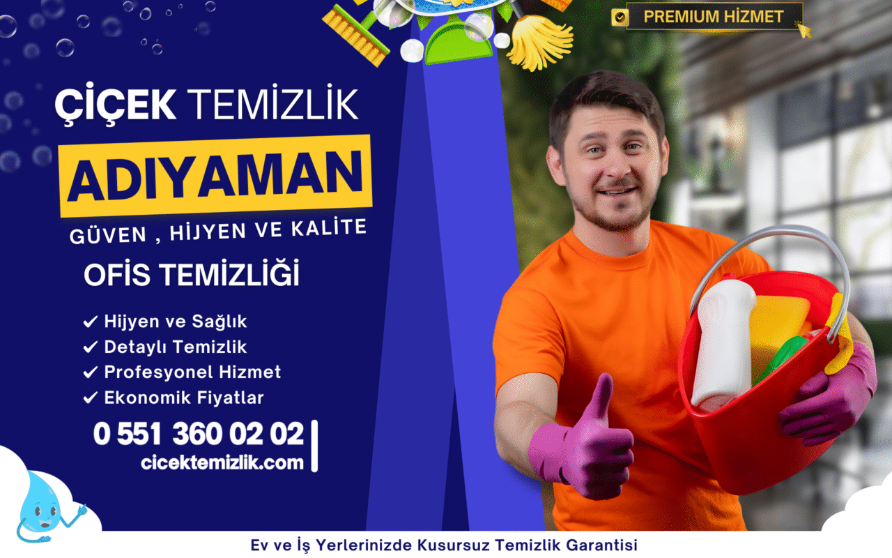 Adıyaman’da ofis temizliği konusunda profesyonel bir ekip arıyorsanız, Çiçek Temizlik olarak her zaman yanınızdayız. Sağlıklı, hijyenik ve ferah bir iş ortamı için bize güvenin.